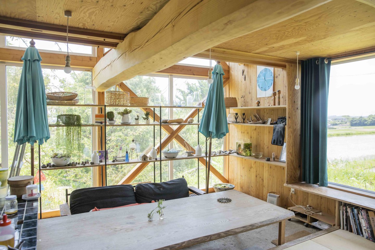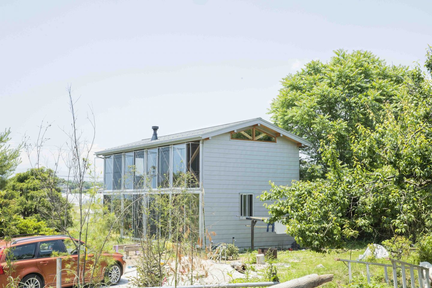 このお宅は素朴屋建築の中ではかなり異質な外観となっております。板金ハウスとでも呼びましょうか、れっきとした木造軸組住宅なのですが、それをアイアンでくるみこんだとでも言いましょうか、不思議で小粋なお宅になっています。建具や階段などにもアイアンが巧みに配されており、木と鉄の見事な融合が心地よい。お施主さんのK氏は造園家、奥様もデザイン関係と、クリエイティブ感満載のご夫婦ならではのユニークで楽しいお家に仕上がりました。写真はありませんが、お風呂は鉄平石張りのバスタブです。